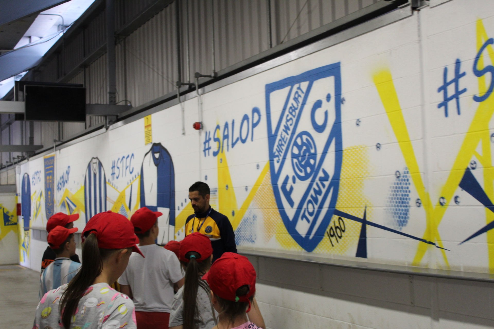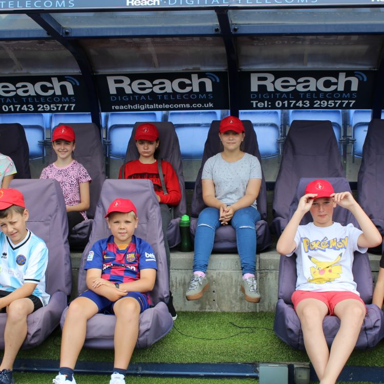 The children are all sent to live with a host family for one month over the summer and for the past few years, hosts Andy and Amy Smith have been bringing their group to Montgomery Waters Meadow for a tour of the stadium and a behind the scenes look at Shrewsbury Town. Although none of the children speak English, a translator accompanied them to make sure that they were able to understand everything being said and were able to learn about how a professional football club runs. The group were shown the home and away dressing rooms, the safe standing area, they were able to sit in in the dugout and also received a goodybag of Shrewsbury Town items from the clubshop at the end of the visit.