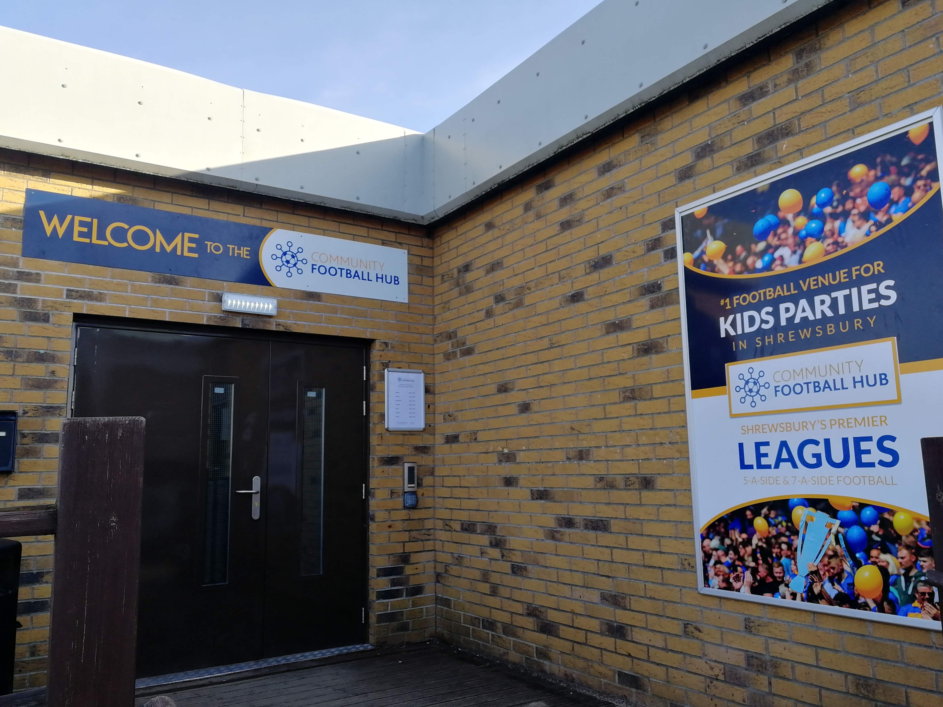 Signage above entrance at Community Football hub