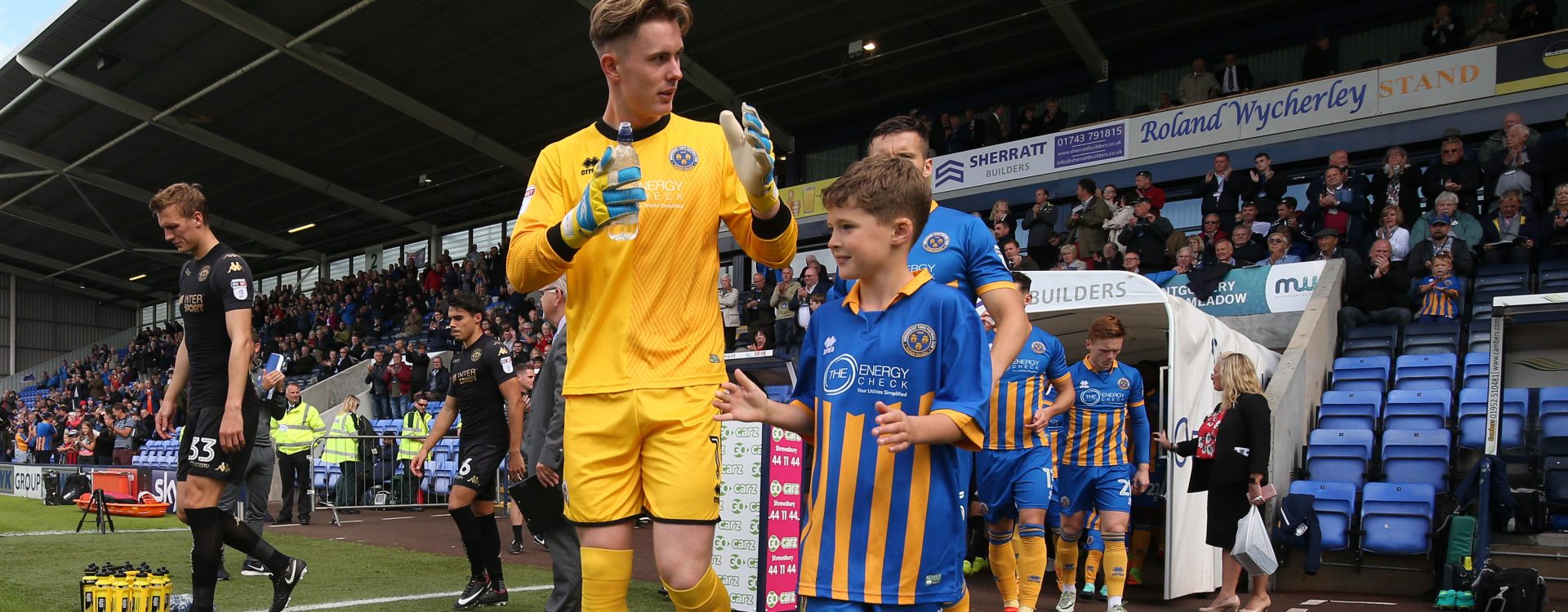 Our latest Junior Member to walk out with the Shrewsbury Town stars onto the field was seven year old Iwan Harvey!
